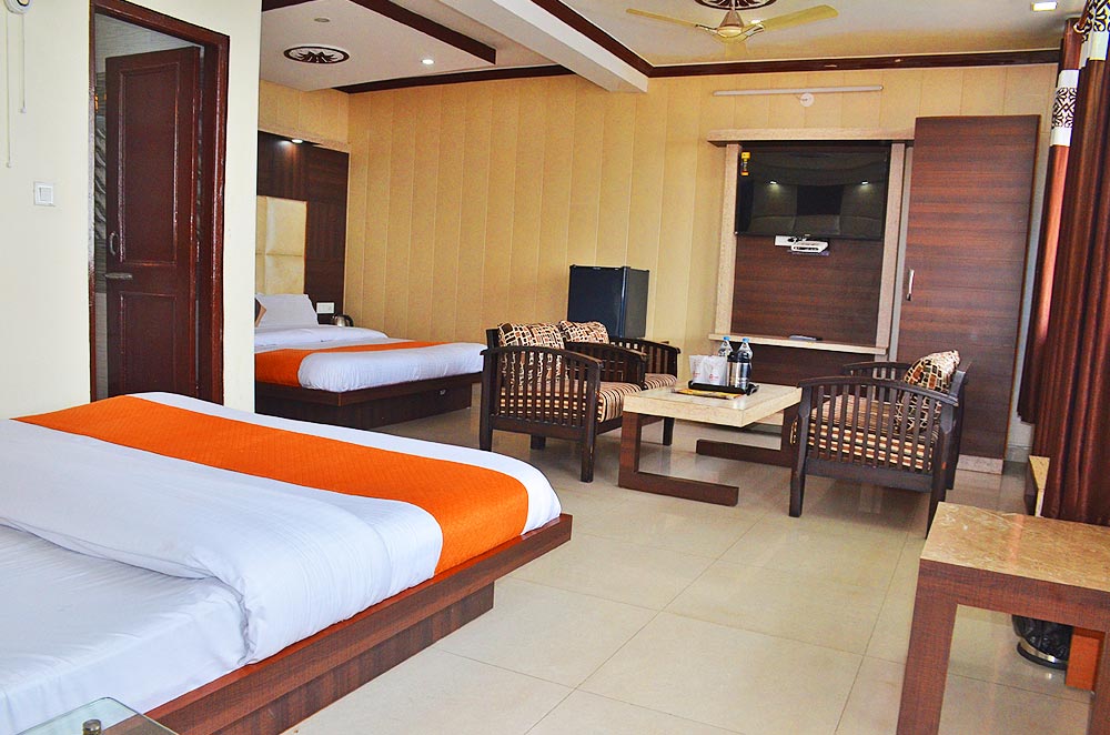 The hotel features ultra-modern facilities with tastefully furnished rooms, elegant carpeting, and well-appointed bathrooms equipped with modern amenities. Each room includes LED display TVs, telephone connectivity, and comfortable interiors designed for a pleasant stay.